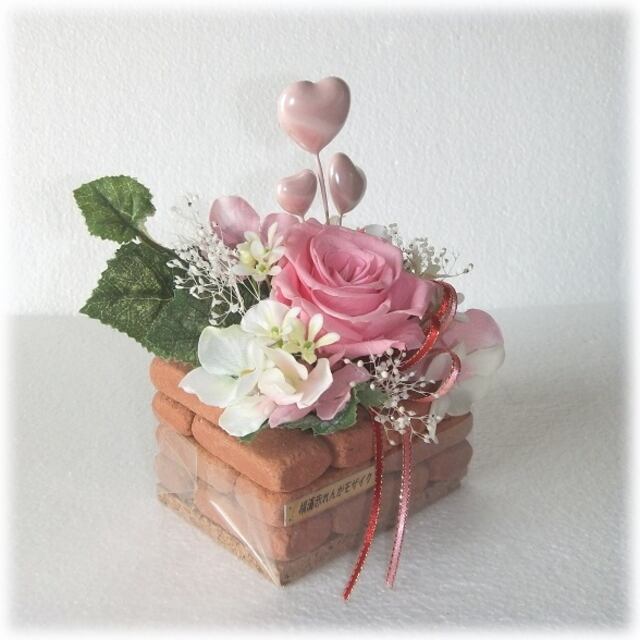● 本物のミニレンガで作ったハンドメイドの小さな花壇です。花壇にはプリザーブドフラワーでアレンジメント♪ お部屋のインテリアに、プレゼントにとても喜ばれています♪