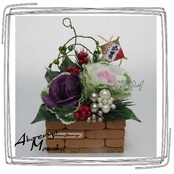 ●  ミニレンガを1個づつ積み重ねて作った可愛い花壇に、アーティフィシャルフフラワーの葉ボタンをアレンジしてあります。すべてハンドメイドオリジナル、一つ一つ心を込めて作っているここだけの商品です。