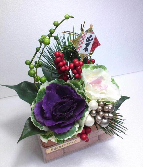 ● 本物のミニレンガで作ったハンドメイドの小さな花壇です。お正月のアレンジメント♪ お部屋のインテリアに、プレゼントにとても喜ばれています♪