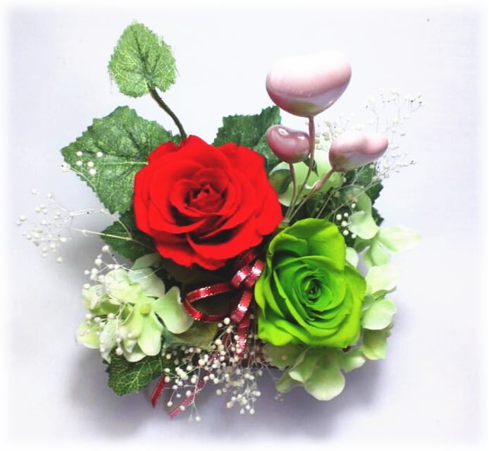 ● プリザーブドフラワーその他部品などは針金などで固定してありますので、取扱いにはご注意ください。
