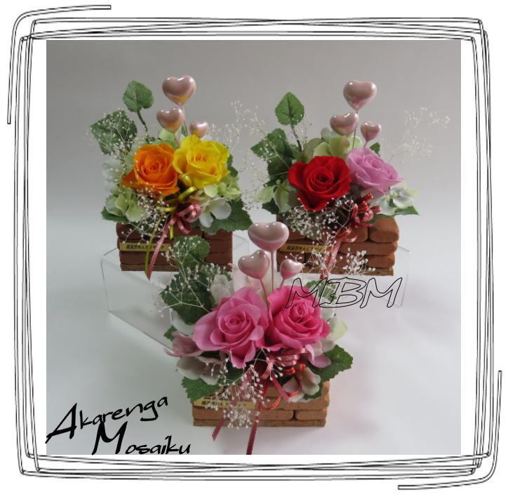 ●  ミニレンガを1個づつ積み重ねて作った可愛い花壇に、プリザードフラワーの薔薇をアレンジしてあります。すべてハンドメイドオリジナル、一つ一つ心を込めて作っているここだけの商品です。